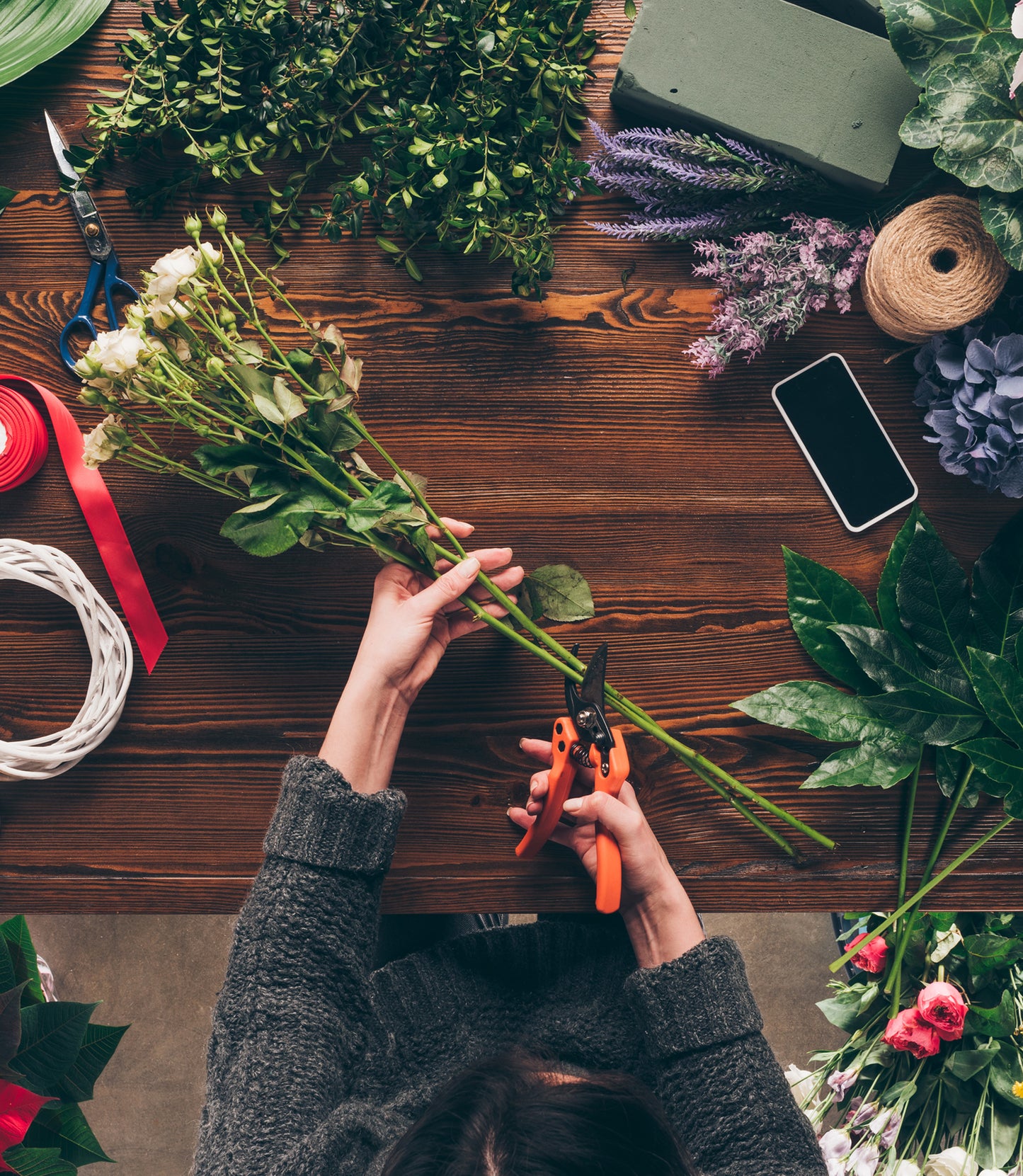 Leave it to our talented design team! We will create a custom straight full hinge piece using an assortment of gorgeous seasonal flowers.